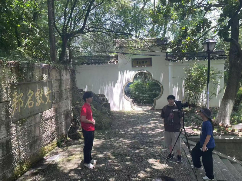 队员们在展馆内进行调研,面对展板内容认真记录。展馆内设有数字化展示区域,传统图文与现代电子设备结合,队员们或驻足观看,或用设备录制讲解内容,展现科技 + 文化 的传播模式,展墙与展品布局体现文化创新理念。下午愈发炎热,但队员们的热情未减,文献名邦 石刻旁摄影师在拍摄队员讲解着石碑的由来,。石刻位于古建庭院中,周围有绿树、月洞门,地面铺设石板路,石刻文字清晰可辨,整体环境静谧,展现江南园林与文化石刻的融合之美。