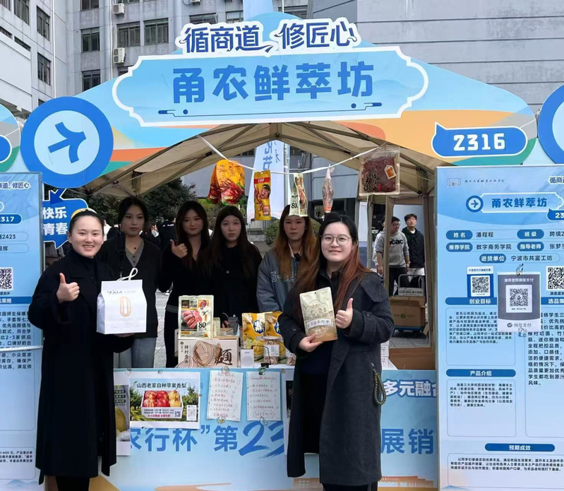 本次商品展销会在宁波市社会科学界联合会指导下,由教务处、学工部(学生处)、团委、创业学院主办,数字商务学院承办,人工智能与品牌创新研究院、宣传部、社会服务处、安全保卫处、后勤基建处、校工会协办、中国农业银行宁波市分行支持。潮新闻客户端对此次展销会进行了现场直播。
