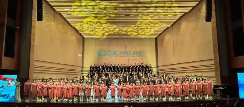 浙江工商职业技术学院北斗星合唱团于2025年10月25日晚在宁波大剧院隆重亮相东方之声中日韩交响音乐会,与宁波呐豆少儿合唱团、宁波合唱团等艺术团体同台献艺。在本次音乐盛宴中,北斗星合唱团不仅深情演绎了《笑迎天下》与《宁波欢迎你》两首曲目,以温暖开阔的旋律,传递出“以乐会友”的真诚待客之道,在熟悉的江南韵致中唱出对四方宾朋的热情邀约。更以志愿者身份为演出提供了全方位的服务支持。
