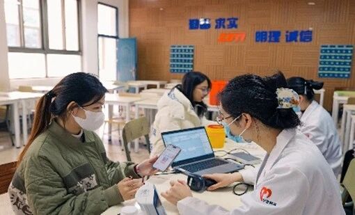 活动现场,志愿者们身着橙红马甲,在登记区协助同学们完成信息核对,忙碌的身影成为校园里的一抹亮色。完成登记后,医护人员细致地为献血者测量血压、进行健康征询,专业又耐心的服务让大家倍感安心。