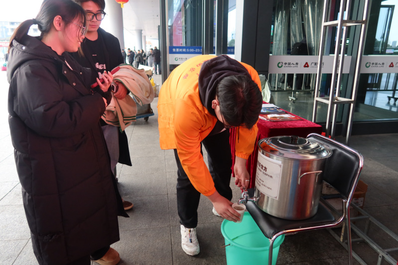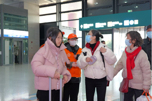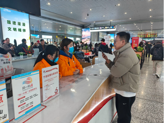“阿姨您好,取票往这边走。”“谢谢你啊小姑娘。”高铁站里,我校志愿者同学为旅客指引着方向。随着“暖春行”活动的正式启动,宁波火车站内随处可见身着橙色马甲的志愿者身影。他们头戴小黄帽,身着小橙甲,在售票大厅、候车大厅、进出站口等关键区域穿梭忙碌。从购票咨询到候车引导,从行李搬运到重点旅客关爱,志愿者们用专业的服务和饱满的热情,为旅客们提供了无微不至的帮助。他们的身影,成为了春运期间火车站内一道亮丽的风景线。