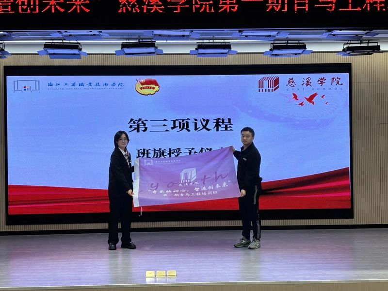 2024年11月3日下午18:00,慈溪学院第一期“青瓷映初心,智造创未来”大学生工匠培养计划暨青马工程培训班开班仪式在慈溪学院报告厅举行。本次开班仪式由裘酉年作为主持人,并且邀请了慈溪学院党总支副书记陈建明、校团学指导老师陈烁、团总支书记邵烨波老师、学生会秘书长方益杭老师出席此次开班仪式。