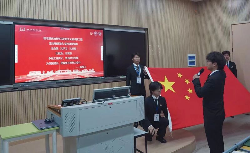 “我志愿参加青年马克思主义者培养工程,坚定理想信念,坚持强技铸魂,比品德、比学习、比技能,比就业、比健康,争做工商英才,争当时代先锋,为强国建设、民族复兴而努力奋斗!” 仪式现场,全体学员高举右拳,庄严宣誓。铿锵有力的誓言响彻会场,既是对初心使命的郑重承诺,更是新时代青年勇担重任的坚定宣言,彰显着宁海学子 “强技铸魂、逐梦前行” 的青春担当。