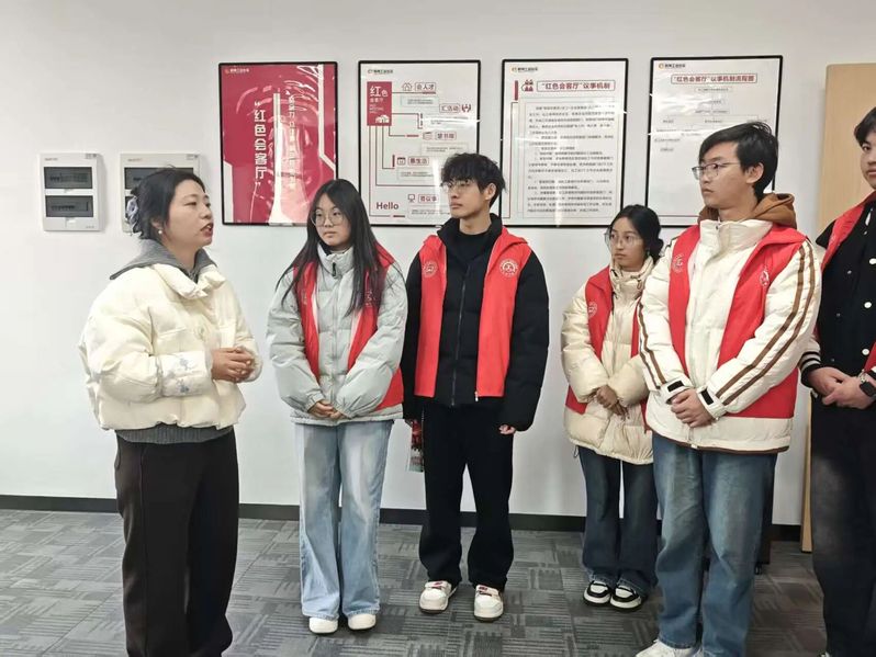 随后,新梅工业社区陈书记与小分队成员亲切交流,详细介绍了社区概况。陈书记重点介绍了微学院“引校进企”的特色模式。作为宁海县“三万三城”建设的重要创新载体,该平台通过“本地招生培养、本地就业成才”的良性机制,已发展成为集“现代学徒制人才培养基地”、“大学生就业基地”、“科技服务站”、“志愿服务基地”于一体的综合性平台。在陈书记的带领下,小分队成员实地参观了校社共建微学院“智汇宁新”。参观过程中,成员们认真聆听介绍,深入了解微学院的运行模式与建设成果,对校社协同服务地方发展的模式有了更直观的认识。