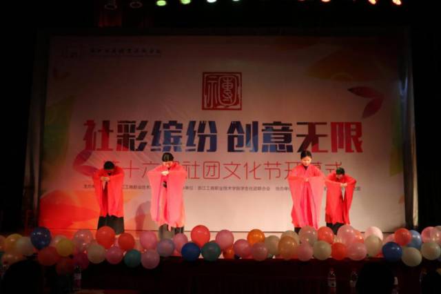 2016年4月24日下午13:30,浙江工商职业技术学院第十六届社团文化节开幕式在博学楼报告厅隆重开幕。本届文化节以“社彩缤纷,创意无限”为主题,为社团学子搭建展示和锻炼自己的平台,提高学生综合素质,促进校园文化繁荣。