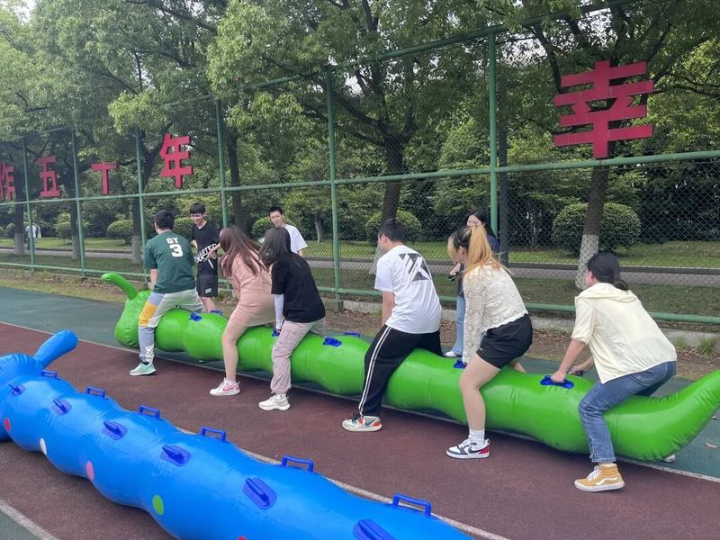 急速60秒、网球井字棋、比武、袋鼠跳、沙包掷准、足式保龄球、毛毛虫、跳长绳,八个趣味童年小游戏点燃操场,同学们忙忙碌碌穿梭在不同的游戏点跟面,无法放下的嘴角诉说了青春绽放的喜悦,高高扬起的手臂与蓝天绿茵共同构成最美的画卷