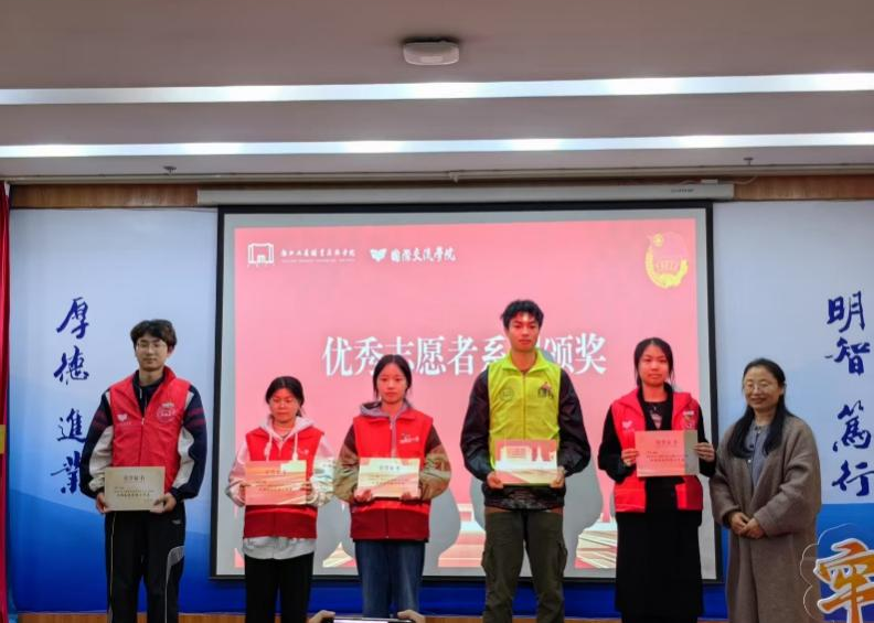 紧接着,2025年学雷锋“笃行”志愿服务月活动正式启动。学生工作部负责人和各学院党总支副书记先后为无偿献血优秀志愿者、“一起云支教”优秀志愿者及优秀组织颁发荣誉证书。随后“笃行”志愿服务队授旗仪式和“笃行”志愿服务活动倡议宣誓也顺利进行。