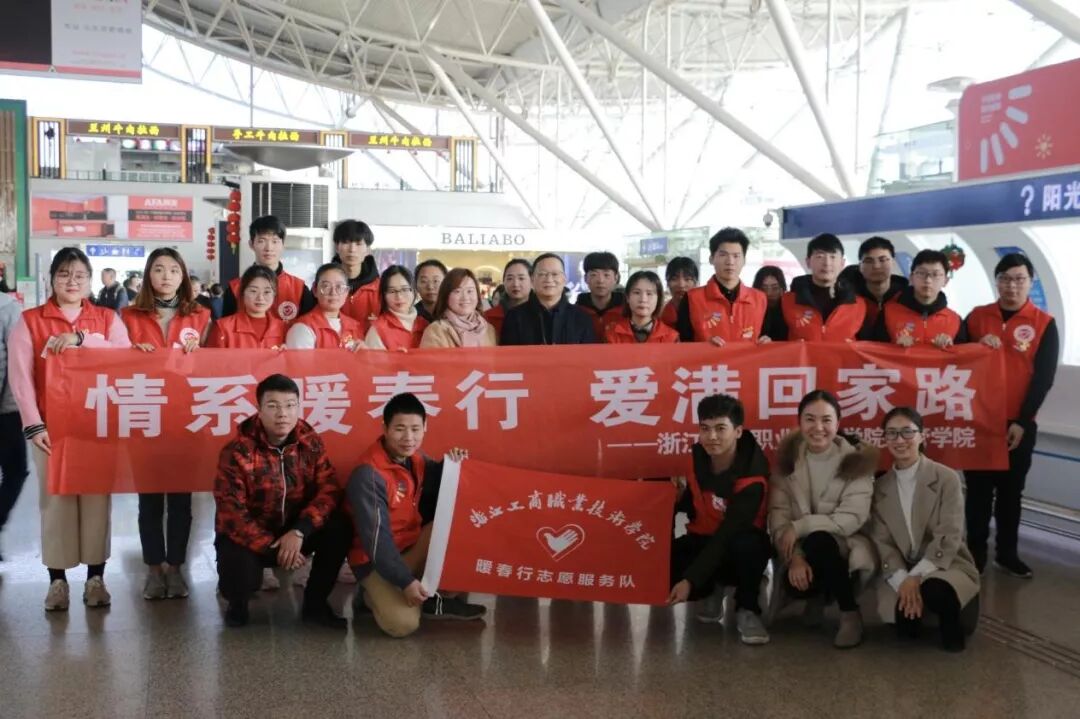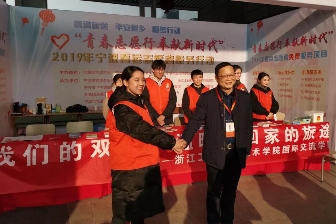 1月23日下午,校党委委员、副校长应晓清老师一行前往铁路宁波站、宁波栎社国际机场看望、慰问奉献在春运第一线的我校“暖春行”志愿者。