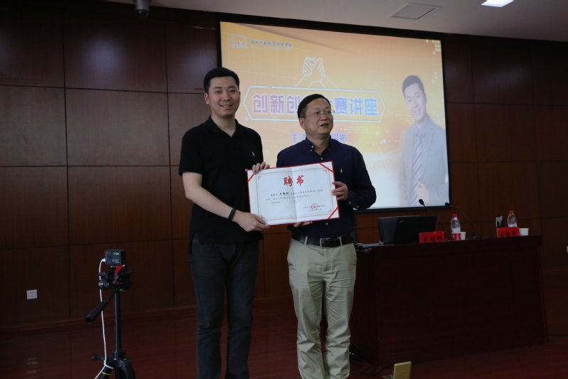 会上,举行了聘书授予仪式,聘任丘锡彬为我校大学生创业导师。