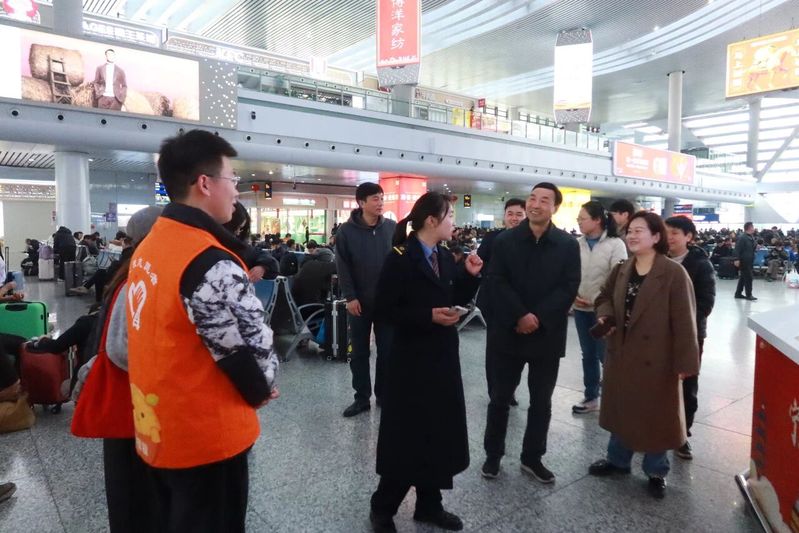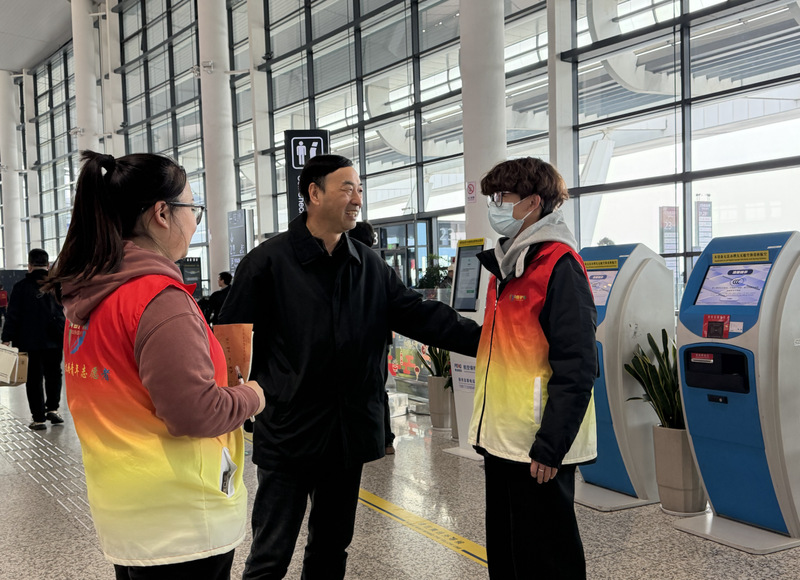 看到同学们熟练地为旅客提供引导咨询、秩序维护、帮扶重点旅客等贴心服务,俞书记充分肯定了“暖春行”实践活动的意义。他表示,同学们利用假期投身社会实践,服务社会所需,是践行青年责任、彰显学校风貌的生动体现。这份经历不仅是能力的锻炼,更是精神的成长。他鼓励大家继续发扬志愿精神,在服务中学习,在奉献中成长,并代表学校向全体团队成员致以诚挚的问候和新春的祝福。